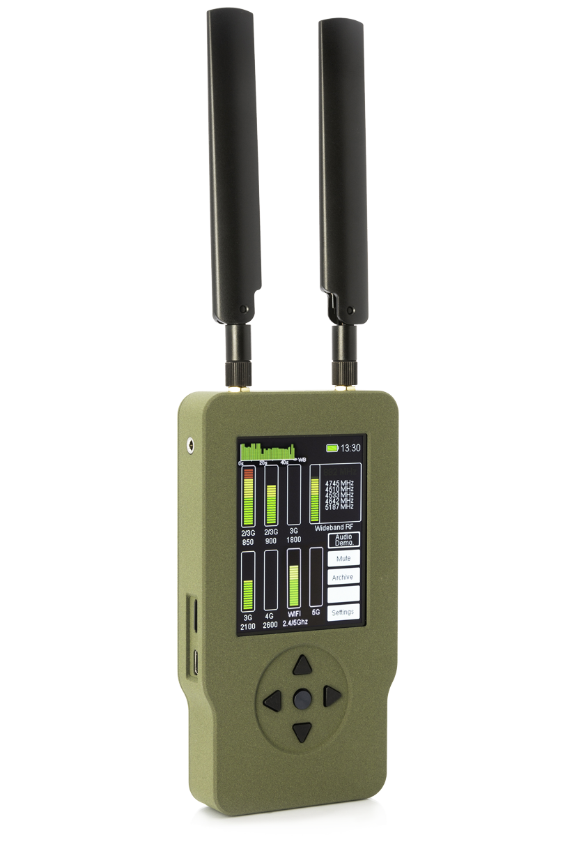 - This innovatively designed hand-held RF detector sweeps areas before high level-meetings and monitors RF activity as the meeting progresses ensuring that the area remains safe.